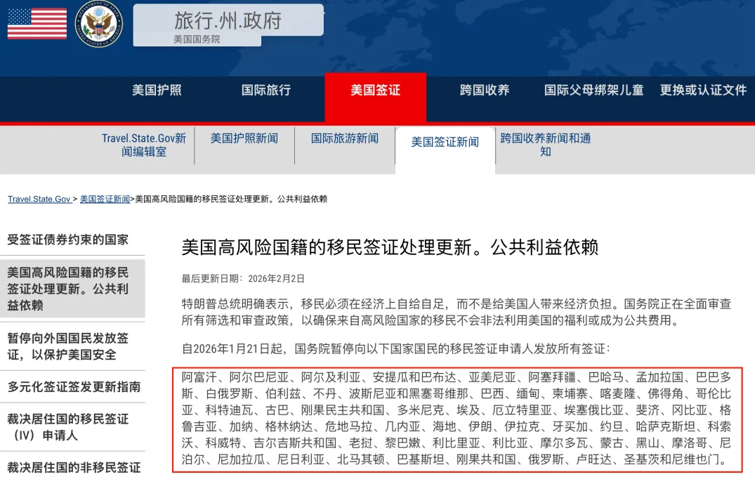 截至2026年2月11日,美国国务院官网及美国驻华大使馆均未发布任何 “追加中国进入暂停名单” 的正式公告。从惯例来看,此类重大外交与政策调整,必然会通过政府通告及权威媒体同步发布,而非仅靠签证官网弹窗 “悄然告知”,逻辑上完全不成立。