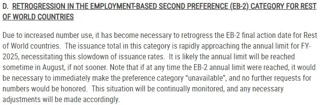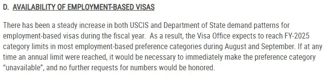 事实上,国务院早在8月和9月的《签证公告》中已多次发出警示:由于需求快速增长,EB-2配额极可能在8月或9月被提前用尽。